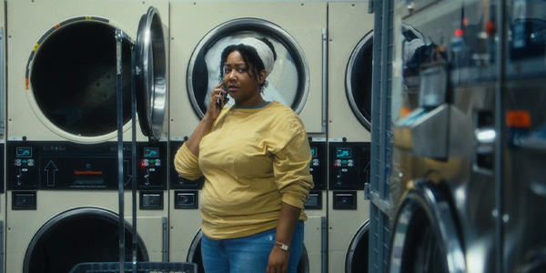 Greta enjoys the laundromat’s calm until her sister’s call about Father’s Day stirs grief. She comforts her sister while fumbling with a sheet. Afterward, the owner helps her fold, and they share a quiet connection.